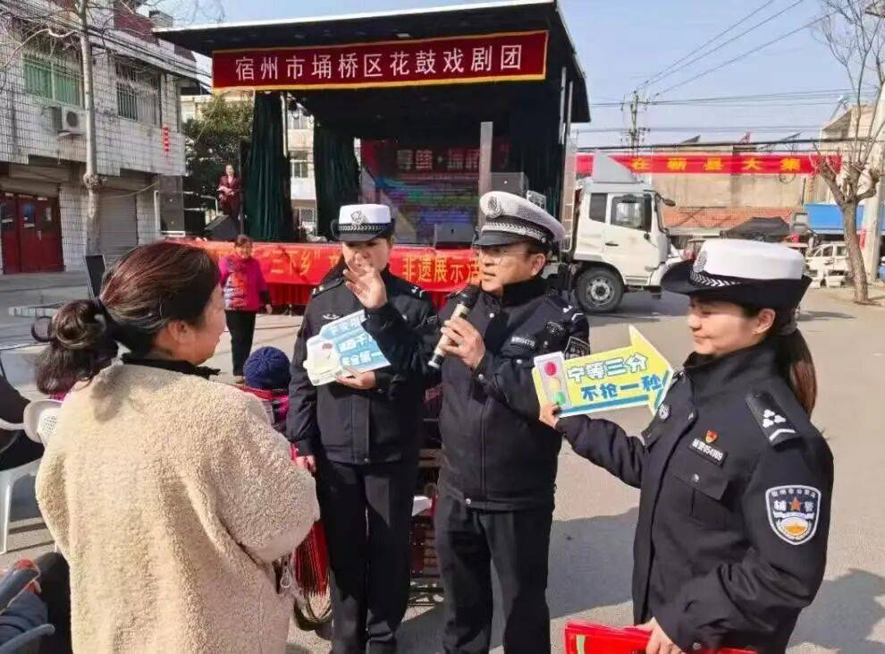 为进一步推进春运农村交通平安办理工做,提拔农村群众平安出行认识,借帮文旅部分“送戏下乡”平台,走进辖区蕲县镇,开展“斑斓村落行”交通平安巡回宣传勾当,把交通平安常识融入热闹的新春空气,用贴心宣讲守护群众出行安然。